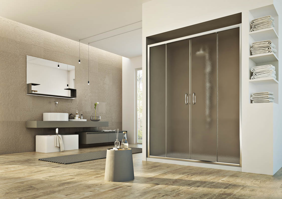 - Porta doccia composta da 2 ante fisse e 2 porte scorrevoli